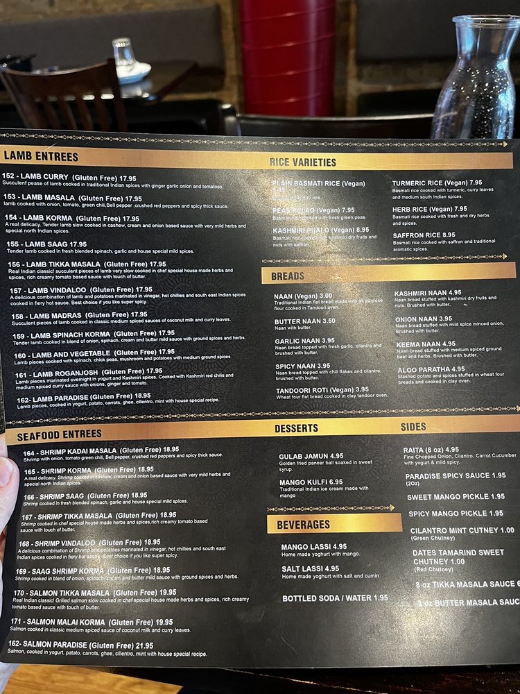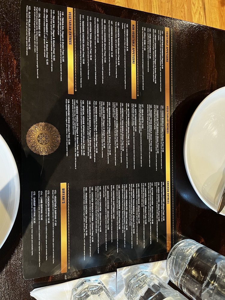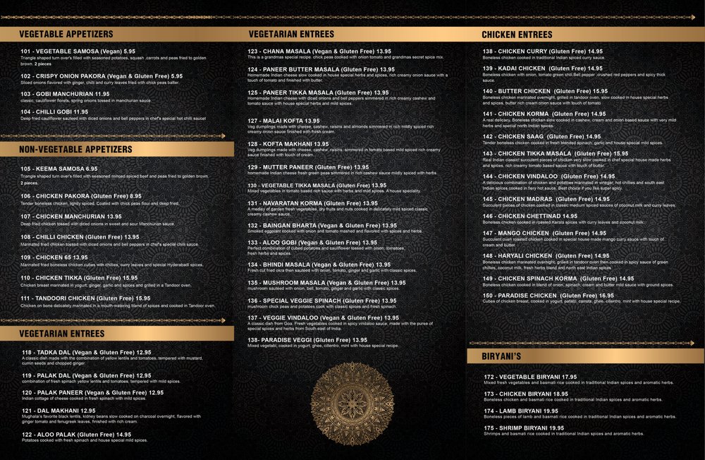 Indian Paradise Menu